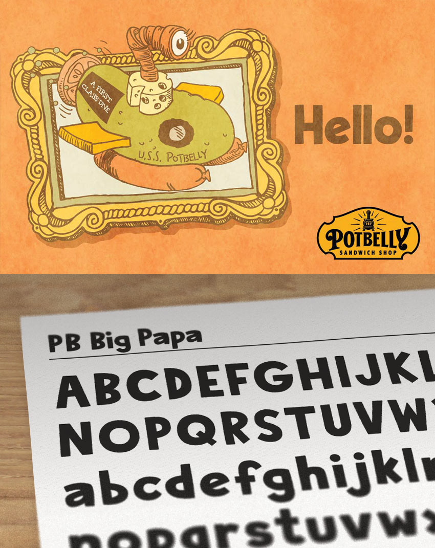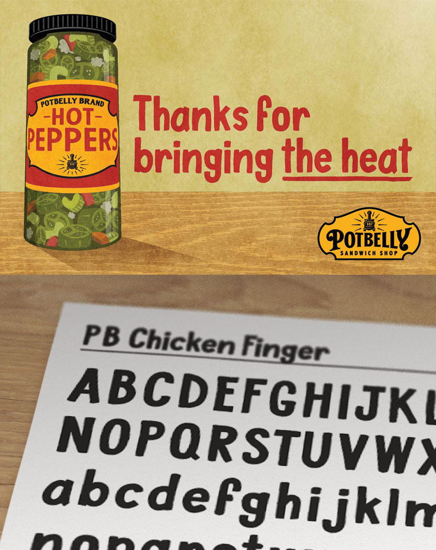 Some examples of hand-drawn lettering used in Potbelly campaigns.